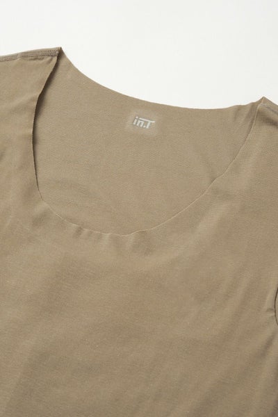 カットオフ=切りっぱなしでさらりとした着心地! ワイシャツ・Tシャツの下の着用でも透けずノーネクタイでも見えない深めのUネック仕様 抗菌防臭性に優れた万能な清涼インナー 綿混の心地よい肌ざわり クリアベージュ