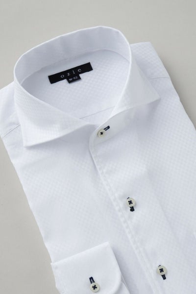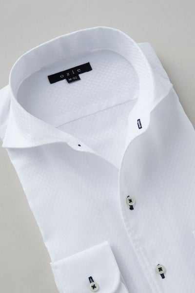 ノーネクタイ専用のややカジュアル度の高い商品でありながら、非常にエレガントなシャツです。