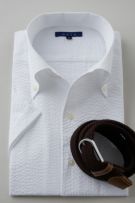 このシャツにはクールマックスのシアサッカーを使用しました。