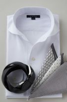 ノーネクタイ専用のややカジュアル度の高い商品でありながら、非常にエレガントなシャツです。