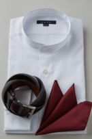 カジュアルのみならずジャケットスタイルにも最適なスタンドカラーシャツ