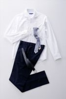 ネクタイをする場合は、素材感がおなじニットタイがおすすめです。
