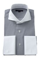ozieではネクタイとの相性がいいホリゾンタルカラーをダブルカフス仕様にして生産。
