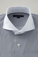 タイドアップはもちろんですが、ビジネスシーンをアンタイド(ノーネクタイ)で、そして上品カジュアルシャツとして着用するのに非常におすすめの衿型です。