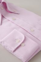 衿には衿立ち・衿開きのよいロールの美しい、大きからず小さからずの使い勝手のよいボタンダウン型を採用しました。