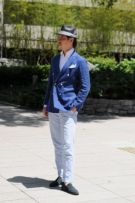 パーティーシーンでは、アクセントとして首周りにアスコットタイなどを巻くと、よりいっそうエレガンス度UPです。