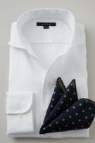 ノーネクタイ専用のややカジュアル度の高い商品でありながら、非常にエレガントなシャツです。