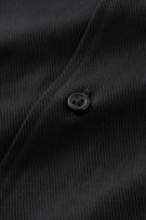 衿と前立ての裏部分がオープンカラーのように縫い目がなく、1枚の生地でつながって出来ているため、第一ボタンをはずして衿を開き気味にして着用すると衿から第一ボタンにかけてきれいなロールが出るようになっています。