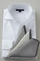 ノーネクタイ専用のややカジュアル度の高い商品でありながら、非常にエレガントなシャツです。