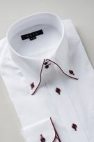 衿・カフスにサテンテープパイピングのドゥエボットーニBDシャツ