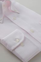 衿には衿立ち・衿開きのよいロールの美しい、大きからず小さからずの使い勝手のよいボタンダウン型を採用しました。