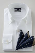 ノーネクタイ専用のややカジュアル度の高い商品でありながら、非常にエレガントなシャツです。