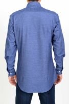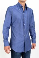一見デニム調のカジュアルな見栄えですが、ドレッシーな仕上がりだけに、カジュアルのみならず、ビジネスカジュアルにピッタリのシャツと言えます。