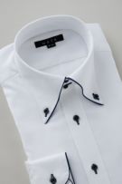 プレミアムコットン使用の綿100%に特殊な形態安定加工を施すことにより、ポリエステル混の形態安定シャツに近い防しわ性を実現しました