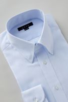 ネクタイを結んだ際のソフトな衿ロールがエレガントなスナップダウンシャツ。