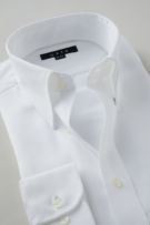 ネクタイを結んだ際のソフトな衿ロールがエレガントなスナップダウンシャツ。