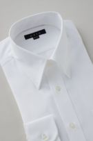 プレミアムコットン使用の綿100%に特殊な形態安定加工を施すことにより、ポリエステル混の形態安定シャツに近い防しわ性を実現しました