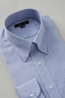 ネクタイを結んだ際のソフトな衿ロールがエレガントなスナップダウンシャツ。