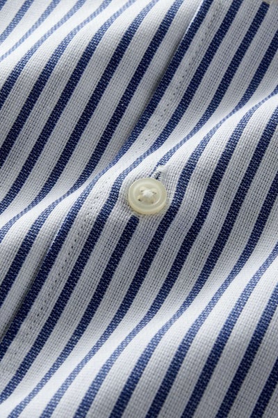 通気性がよく、汗をかいたときに肌離れのいいパナマ織のストライプ生地を使用。