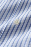 衿と前立ての裏部分がオープンカラーのように縫い目がなく、1枚の生地でつながって出来ているため、第一ボタンをはずして衿を開き気味にして着用すると衿から第一ボタンにかけてきれいなロールが出るようになっています。