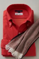 ぱっと見た目は鮮やかカラーのイタリアンカラー ボタンダウンシャツ。