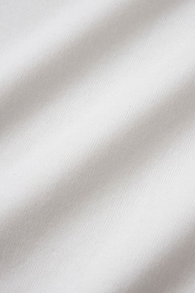 天竺の柔らかい風合いを残しつつ、型崩れしにくいのこと、また、通常のニットより生地のツヤや自然な光沢感が出ることが大きな特徴です。