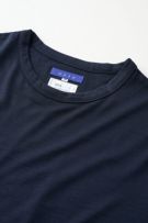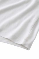 一般的なTシャツに見られる「ロックネック」とは異なり、縫い代が表に出ないため見た目にも美しく上品で、肌へのあたりも柔らか。