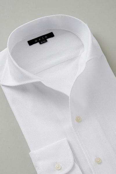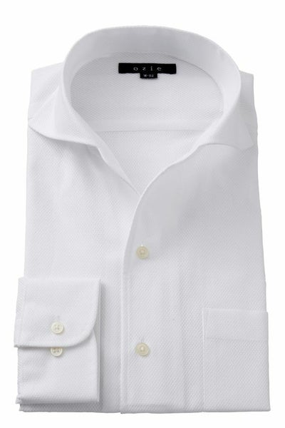 イタリアンカラーと広角なワイドカラーを掛け合わせたスタイリッシュなノーネクタイ専用の衿型です。