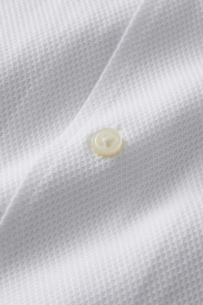 見た目はシャツ生地でありながら、ニット生地の鹿の子に近い涼しげな見栄え。