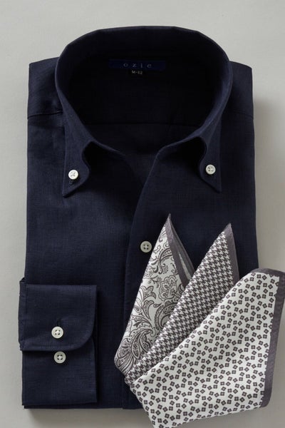 リネンシャツといえどもドレスシャツ(ワイシャツ)の仕様で生産しているため、衿元しっかり!