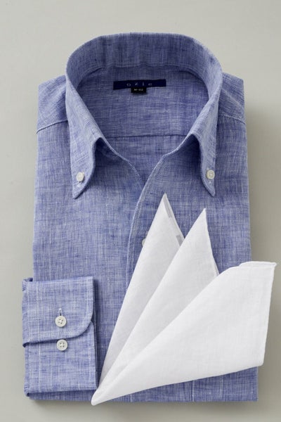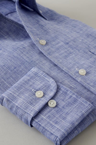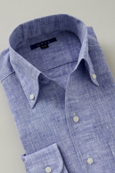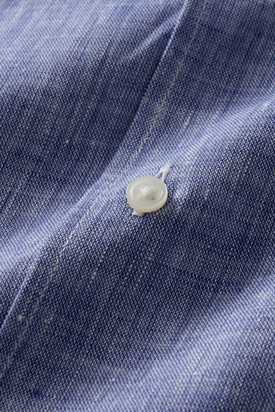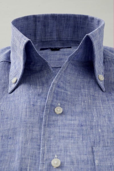 リネンシャツといえどもドレスシャツ(ワイシャツ)の仕様で生産しているため、衿元しっかり!