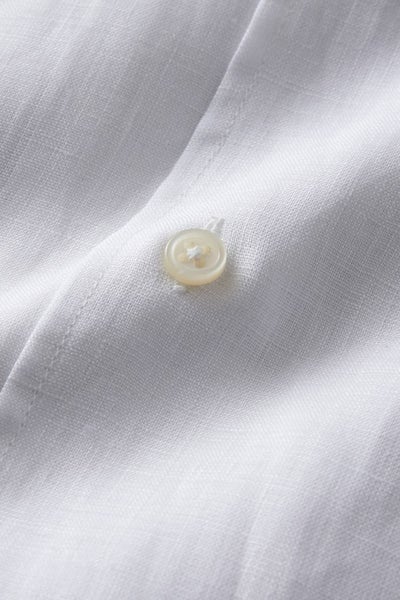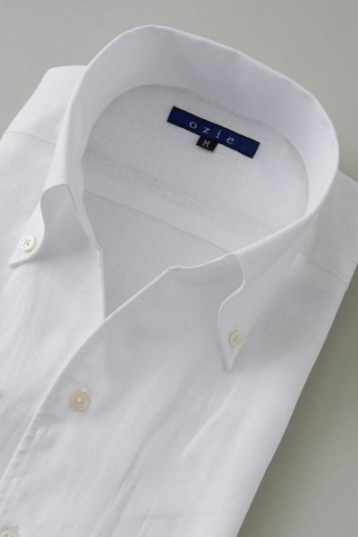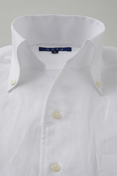 リネンシャツといえどもドレスシャツ(ワイシャツ)の仕様で生産しているため、衿元しっかり!