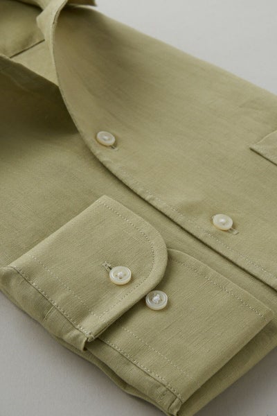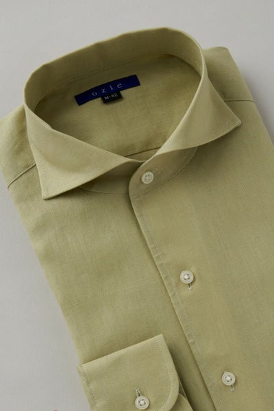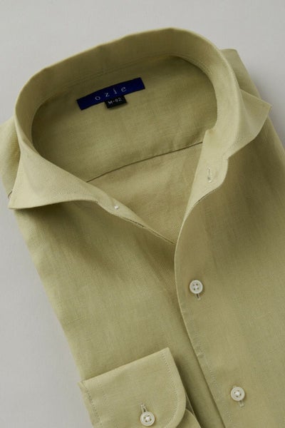 【メンズ・ドレスシャツ・ワイシャツ】ナチュラルフィット・麻リネン・イタリアンカラー・ワイドカラー・第一ボタンあり