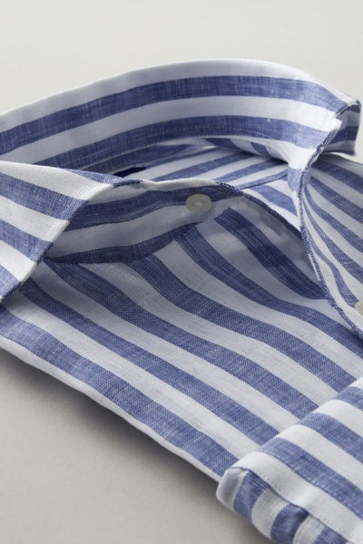 リネンシャツといえどもドレスシャツ(ワイシャツ)の仕様で生産しているため、衿元しっかり!