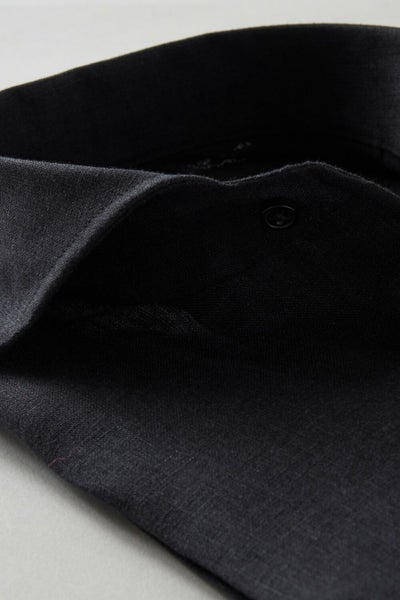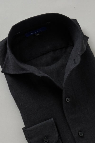リネンシャツといえどもドレスシャツ(ワイシャツ)の仕様で生産しているため、衿元しっかり!