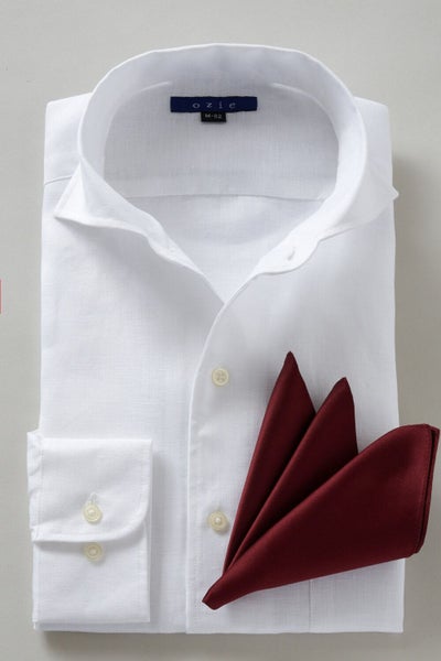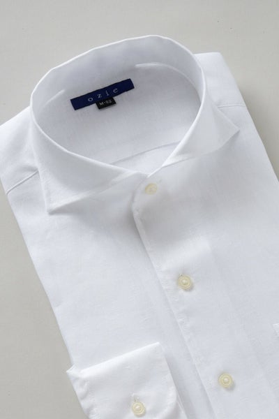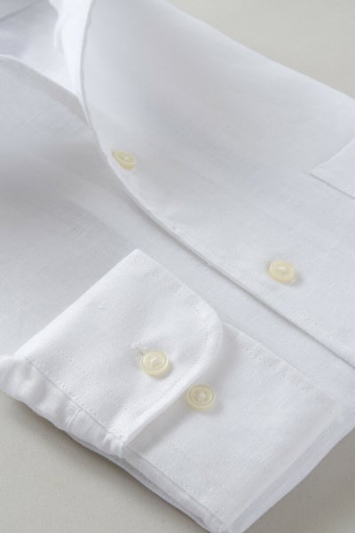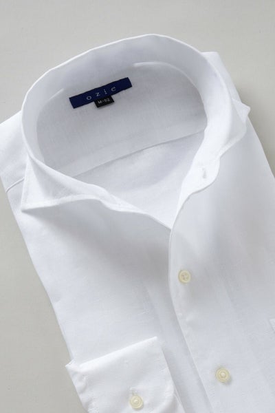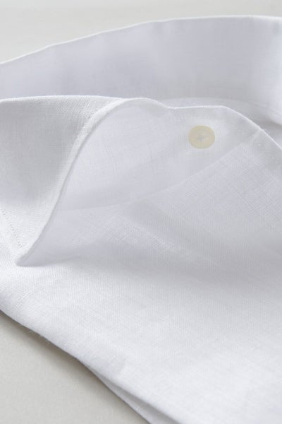 リネンシャツといえどもドレスシャツ(ワイシャツ)の仕様で生産しているため、衿元しっかり!