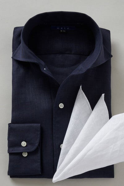 リネンシャツといえどもドレスシャツ(ワイシャツ)の仕様で生産しているため、衿元しっかり!