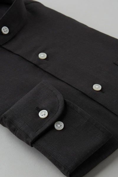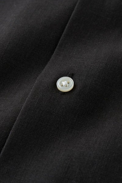 このシャツには春夏の代表的素材=麻にポリエステルをブレンドした生地を使用しております。