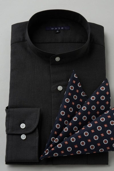 カジュアルのみならずジャケットスタイルにも最適なスタンドカラーシャツ
