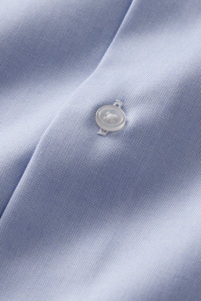 プレミアムコットン使用の綿100%に特殊な形態安定加工を施すことにより、ポリエステル混の形態安定シャツに近い防しわ性があります。