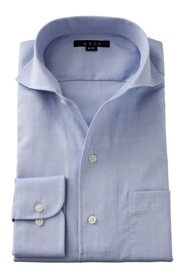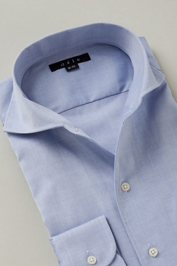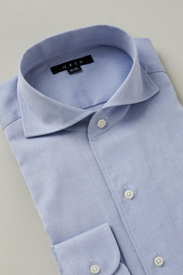 【メンズ・ドレスシャツ・ワイシャツ】ナチュラルフィット・プレミアムコットン・形態安定・オックスフォード・イタリアンカラー・ワイドカラー・第一ボタンあり