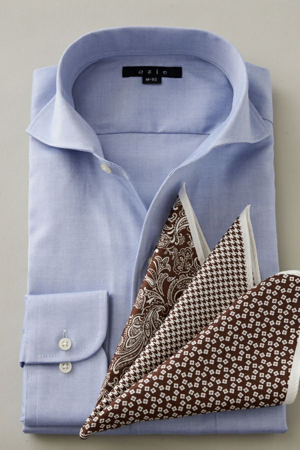 結果、光沢感・ソフト感にあふれ着心地のいい、さらに洗濯後のお手入れが楽といった、相反する事象を併せ持った、ozieの別注生地ならではの上質シャツに仕上がりました。