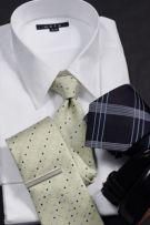 タイドアップに最適なほどよいレギュラーカラーを選択しました。