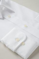上質な綿100%にお手入れが楽な形態安定加工を施した希少性のある生地を使用した、白ブロードのレギュラーカラーシャツ。
