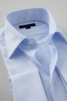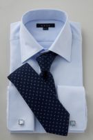 【メンズ・ドレスシャツ・ワイシャツ】ナチュラルフィット・プレミアムコットン・ダブルカフス・形態安定・ワイドカラー・ポケット無し