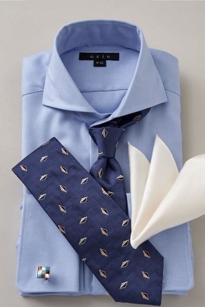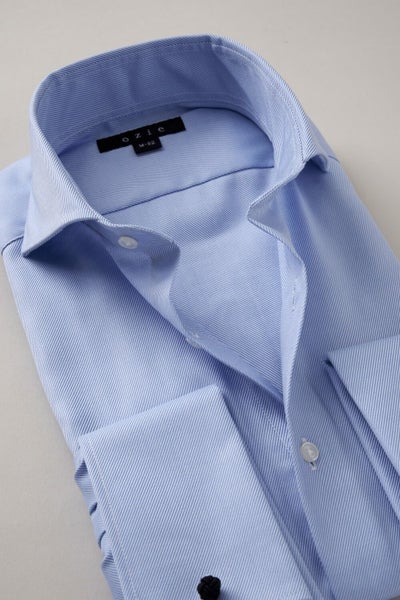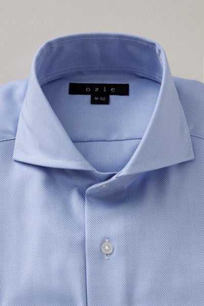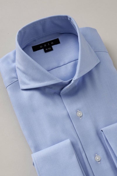 ozieではネクタイとの相性がいいホリゾンタルカラーをダブルカフス仕様にして生産。