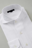 イタリアンカラーと広角なワイドカラーを掛け合わせたスタイリッシュなノーネクタイ専用の衿型です。
