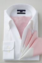 ノーネクタイ専用のややカジュアル度の高い商品でありながら、非常にエレガントなシャツです。