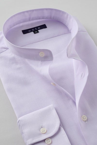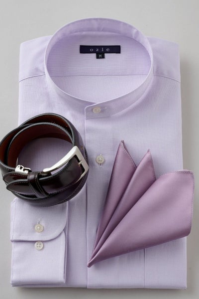 カジュアルのみならずジャケットスタイルにも最適なスタンドカラーシャツ