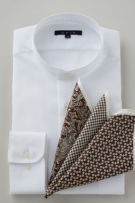 市場で減りつつある衿型で、希少性の高いスタンドカラーシャツ。
